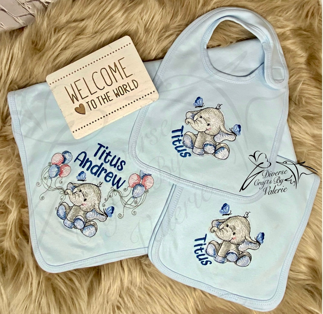 Baby Blanket,Bib, Burp Cloth and Baby Gown